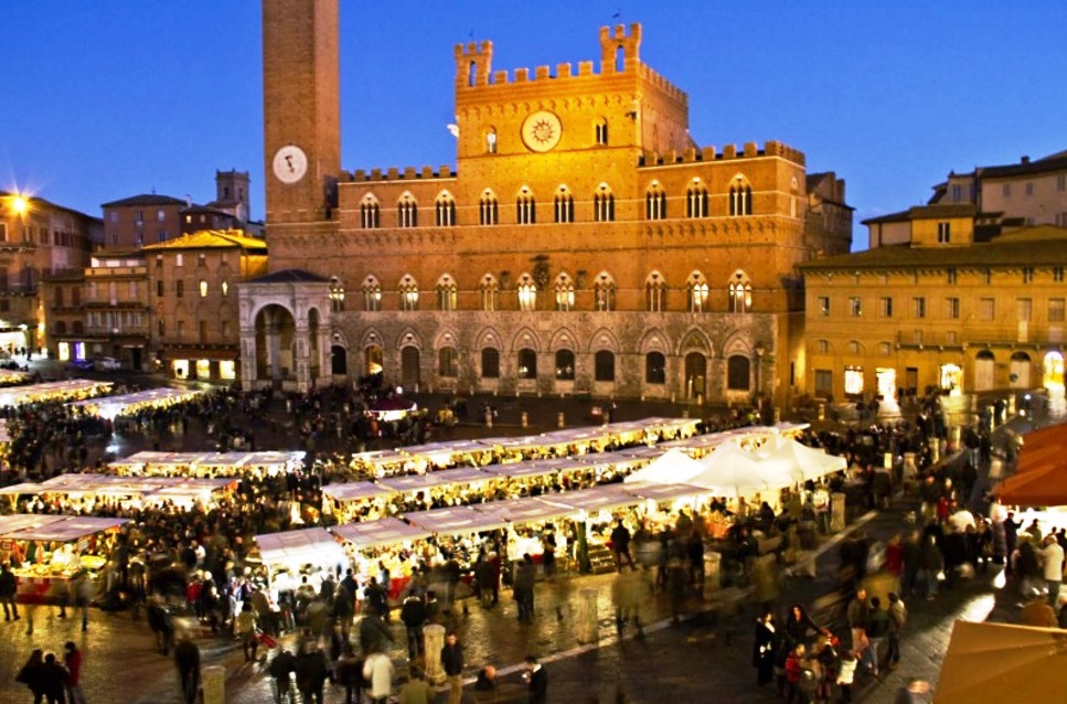 Op 6 en 7 december kun je in Siena teruggaan naar de Middeleeuwen op de grote markt op het Piazza del Campo. Er zijn 150 stands waar marktkooplui lokale producten verkopen en in het Palazzo Pubblico (stadhuis) kun je wijn proeven.