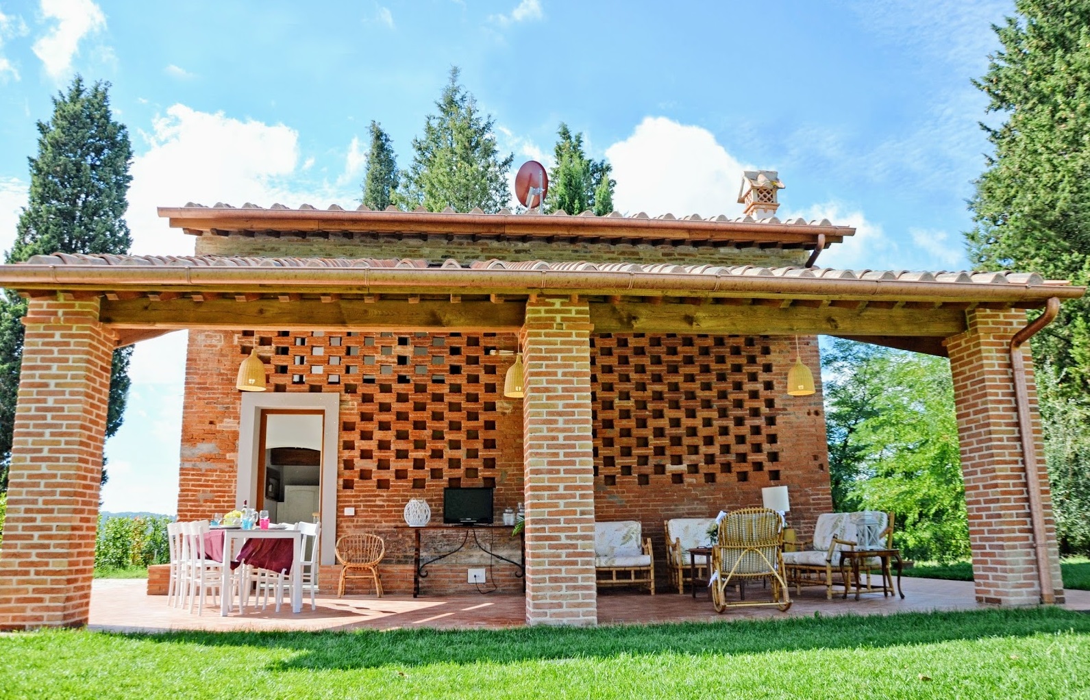 Villetta Giovanna - Dit gezellige vakantiehuis is een gerestaureerde voormalige hooischuur, gelegen midden in het Toscaanse landschap. Het eigen zwembad ligt voor de deur, wie wil daar nu niet vakantie vieren? Er zijn 3 slaapkamers, 3 badkamers, een ruime moderne keuken en een woonkamer prima geschikt voor 6 personen. De grote ramen in de woonkamer annex serre bieden een fijn uitzicht op de mooie tuin en het zwembad. Je kunt eventueel lopend naar het dichtstbijzijnde dorpje, op ca. 1,5 km waar een bar is en een restaurantje. Eigenaresse Giovanna regelt graag allerlei leuke uitjes voor je en geeft je de beste tips voor mooie plekjes en lekkere restaurantjes. Rondom de veranda op de foto is inmiddels een glazen pui gezet, zodat je in alle jaargetijden hier prettig zit (met airco).