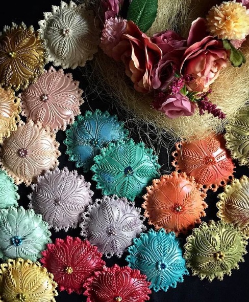 Behalve genieten van natuurschoon kun je op Sardinie ook heerlijk eten. Op Sardegnafood kun je kennismaken met allerlei typische gerechten uit de Sardijnse keuken en dat zijn er veel, van hartige gerechten, bijzondere kazen tot zoete lekkernijen. Op deze foto zie je zogenaamde Su Pistiddu. Dit zijn dessert koekjes die typerend zijn voor de Barbagia regio in het hart van Sardinie. Ze worden gemaakt ter gelegenheid van het Sant Antonio Abate feest. Het is een gerechtje van bladerdeeg of korstdeeg met een jam achtige vulling gemaakt van honing en griesmeel en op smaak gebracht met sinaasappelschil, saffraan of andere kruiden. De bovenkant is heel bijzonder, hierop worden met een soort radeermesjes prachtige graveringen gemaakt. Meestal worden ze goudgeel gebakken maar deze zijn prachtig op kleur gebracht.