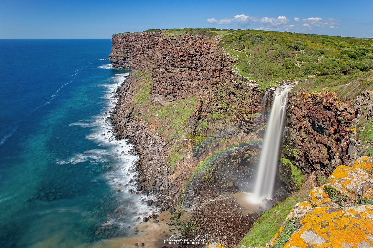 Simon Ska is fotograaf en geeft ook fotocursussen, hij is woonachtig in Cagliari. Op zijn insta vind je foto’s van landschappen, dieren, gebouwen, mensen en tradities, kortom een gevarieerd beeld van Sardinie. De foto is genomen bij Capo Nieddu, aan de westkust in de provincie Oristano bij het plaatsje Cuglieri. De waterval is een bijzondere, omdat het niet veel voorkomt dat een rivier met een sprong over 40 meter direct in zee uitmondt. Je kunt de waterval goed bewonderen vanaf zee, maar je kunt hier ook een mooie, stevige wandeling van ca. 9 km maken over avontuurlijke paden tot een punt waar je de waterval in al zijn pracht kan bewonderen. De waterval komt voort uit de rivier de Rio Salighes, een kleine rivier die over de Campeda vlakte stroomt. Hou er wel rekening mee dat deze waterval alleen te zien is in het voorjaar of als er veel regen is gevallen, dat is dus niet tijdens de Sardijnse zomers.