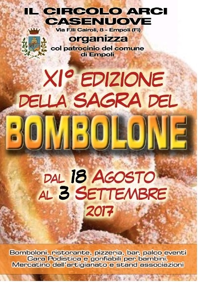 Mocht je deze allemaal niet kunnen meemaken, dan heb je in augustus ook nog een uitgelezen mogelijkheid om Toscaanse Bombolone te proeven. Meestal vanaf half augustus tot begin september is er jaarlijks een sagra del Bombolone in Casenuove, gemeente Empoli (Florence) met genoeg entertainment voor alle leeftijden.