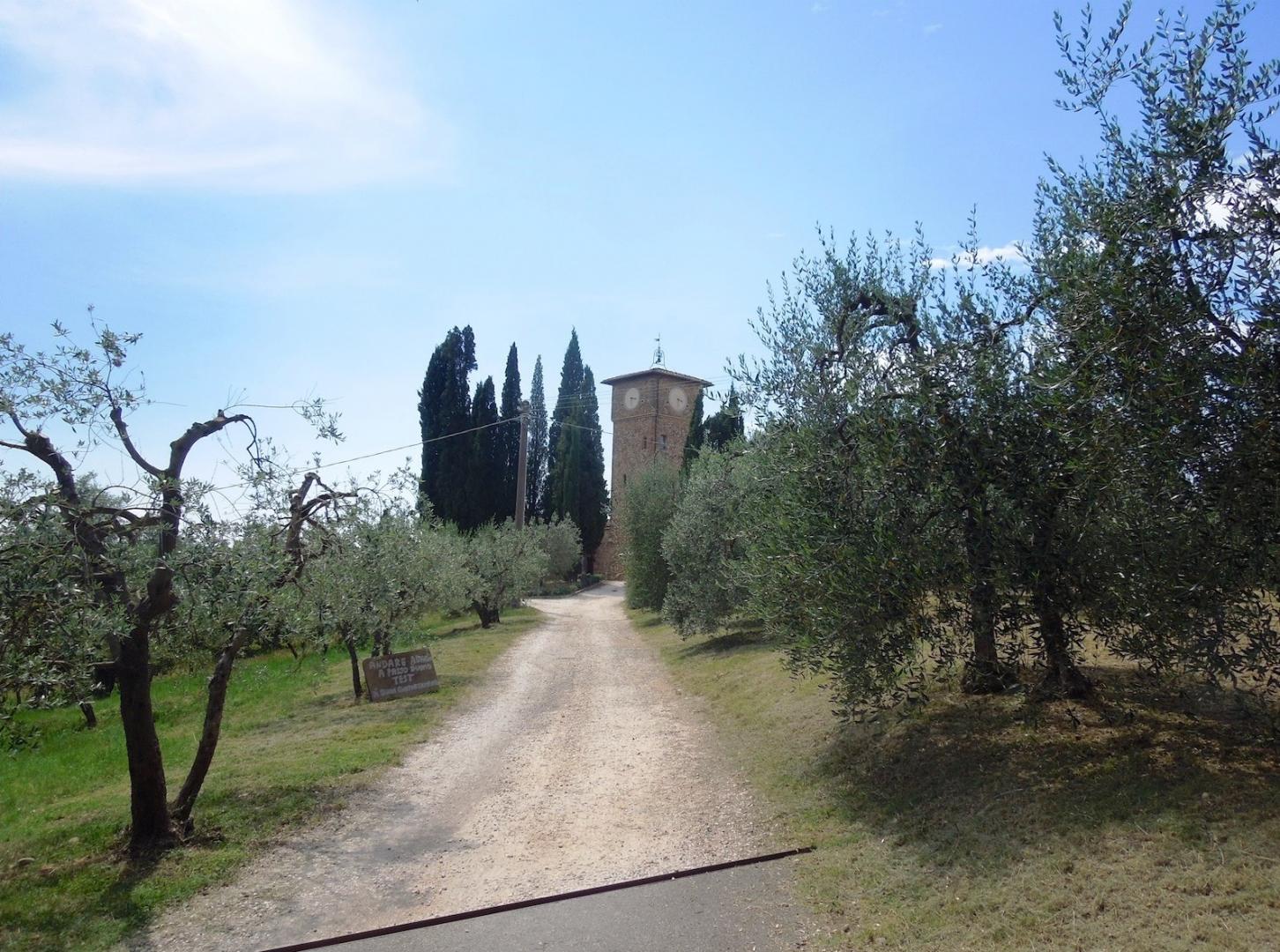 Onderaan de heuvel ga je links de brug over en daarna begint een klim naar boven, tussen wijngaarden en olijfboomgaarden door. Eenmaal boven kom je op een splitsing en hier sla je rechts af, terug naar Montespertoli. Dit is wederom een schitterende weg en met recht behorend tot mooie routes Toscane, met uitzicht bijna tot aan de zee (vanaf Lucardo kunnen ze met helder weer de zee zien!). Je komt langs een laatste kasteel op deze route, het kasteel van Alliano. Dit is geheel privé eigendom, maar door de poort kun je wel een glimp opvangen van een mooi onderhouden, typisch Italiaanse tuin.