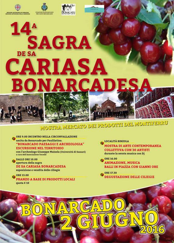 Ook in Bonarcado zijn er leuke dingen te doen. In tegenstelling tot Villacidro vieren de Sarden in Bonarco het feest op 1 dag, namelijk 2 juni. Het feest begint om 9:00 uur, iedereen verzamelt bij de uitgang van Bonarcado per Paulilatino. Vervolgens is er een georganiseerde excursie; “Bonarcado, landschappen en archeologie” die wordt begeleid door de archeoloog van de universiteit van Sassari, Giuseppe Maisola. Rond 10:00 uur is de officiële opening van het festival Sagra de sa Cariasa Bonarcadesa, met verschillende tentoonstellingen van kersen. Om 13:00 uur kan er geluncht worden, er worden allerlei Sardische lekkernijen aangeboden voor slechts € 10,-. De middag staat in het teken van muziek en dans op het plein, vanaf een uur of 16:00 staat Gianni Ore klaar om iedereen te entertainen. Een heerlijke wijnproeverij van kersen zal starten om 17:30 uur. In de buurt van Binzola is een tentoonstelling van hedendaagse kunst waar 30 kunstenaars deel aan nemen. ’s Avonds wordt de muziek verzorgd door een DJ. Al met al een hele gezellige dag!