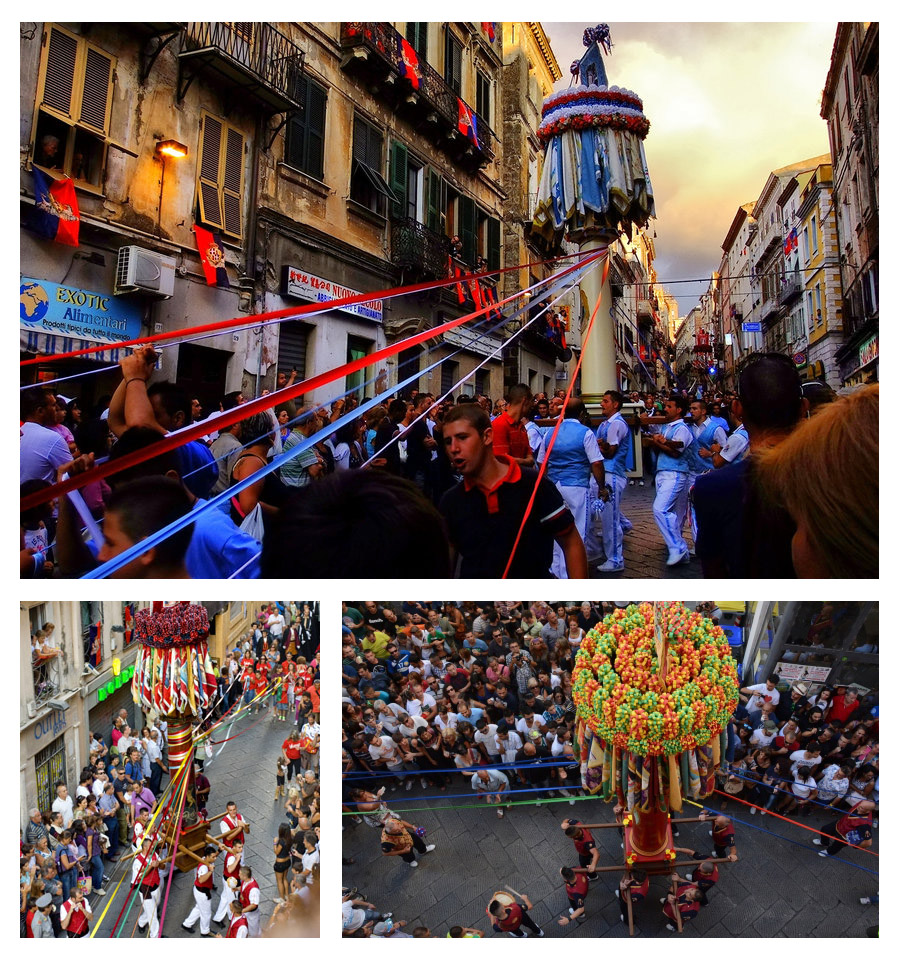Een stukje geschiedenis: het feest is ontstaan in Pisa in de dertiende eeuw, als offer voor de Maagd Maria. In de 16e eeuw werd de stad Sassari herhaaldelijk getroffen dor de pest, en volgens het gezegde werd de meest afschuwelijke epidemie beëindigd door de Maagd Maria. De acht belangrijkste beroepen toentertijd: handelaren, Massai, kleermakers, metselaars, schoenmakers, tuinmannen, leerlooiers en herders hebben samen met de gemeente en de aartsbisschop beloofd om de processie elk jaar voort te zetten om Maria te eren. Elk jaar op 14 augustus werden grote houten machines bedekt met wax en bijbelse figuren, in de vorm van een open palm en dus vergelijkbaar met een altaarstuk. Dit altaarstuk werd overgebracht naar de kerk van Santa Maria di Betlem. De enorme pilaar kandelaar wordt door 8 sterke mannen overgebracht naar de kerk onder begeleiding van muziek.