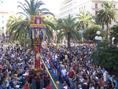 Op 14 augustus is het groot feest in Sassari! De stad wordt dan doorkruist door de Faradda di li candareri, een feest wat al sinds 900 in Sassari wordt gevierd. De processie wordt gehouden op de avond voor Ferragosto en het is de meest belangrijkste religieuze ceremonie voor de bevolking. Het feest wordt daarom ook wel ‘Festha Manna’ genoemd: groot feest. Hiermee eren de inwoners de Maagd Maria, die de stad in de zestiende eeuw redde van de pest. Tijdens de processie dragen acht sterke mannen een enorme pilaar van hout (een grote kandelaar) op hun schouders. De processie begint bij ‘Pla de Castell’ (tegenwoordig Piazza Castello), vanaf daar langs Piazza Azuni en langs Corso Vittorio Emanuele II totaan de kerk van Santa Maria di Betlem. Op de verschillende pleinen is er muziek en wordt er gezongen, maar dit wordt vaak overstemd door de trommels van de processie.