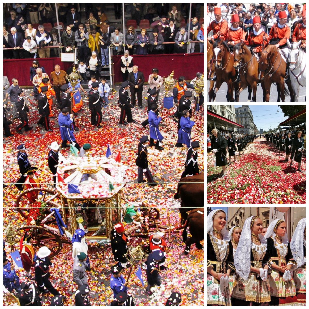 In het begin was het nog een kleine processie maar door de eeuwen heen hebben steeds meer mensen zich aangesloten. Nu bestaat de processie uit ruim 4000 mensen die door de straten van Cagliari lopen. Eerst komen de ‘traccas’, een soort karren door ossen voortgetrokken en prachtig versierd met typisch Sardijnse producten; daarna volgt een grote stoet van mensen in klederdracht uit heel Sardinie die traditionele liederen zingen en gebeden opzeggen; zij worden gevolgd door ruiters te paard.