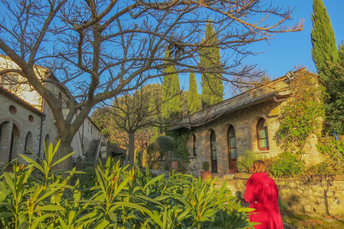 Vervolgens komt Rita ons met een grote glimlach tegemoet op dit ietwat vroege tijdstip. Ze vertelt enthousiast hoe ze reeds 24 jaar met plezier voor de familie Ginori werkt. De familie is zojuist vertrokken, het kasteel is het 'vakantieoptrekje' waar ze graag komen om hun drukke leven even op pauze te zetten legt ze uit. Rita vertelt ons dat de borgo bewoond wordt door de gehele staf van de Markiezen van vroeger. De intussen gepensioneerde werknemers zijn echter nog vrij fit, want aan de steile straatjes en trapjes is hier geen ontkomen aan. In de borgo zijn 9 woningen ingericht als ruime, Toscaanse vakantieappartementen. We lopen langs de appartementen, de 'Taverna' (het restaurant) en wagen ons ook aan het ietwat steile bospaadje richting het zwembad. Gasten kunnen er ook voor kiezen de auto te pakken, maar het is een prachtig bosweggetje vanwaaraf bovendien het kasteel nog beter te bewonderen is.