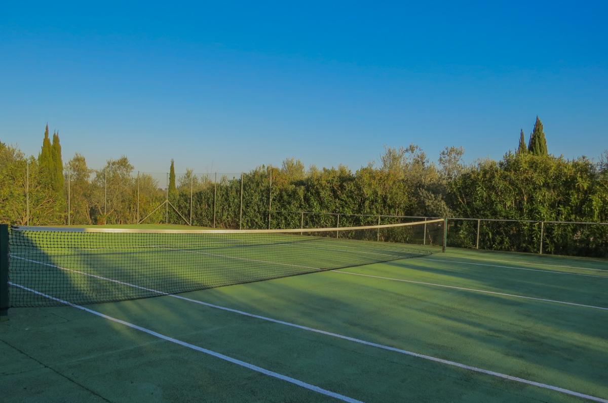 We lopen de trap omhoog waar het zwembad en de tennisbaan gelegen zijn. Het zwembad is groot 25 x 12 meter en heeft een prachtig uitzicht over de val d'Era. Leuk zijn de waterpolo netten, dat is weer eens iets anders om te doen tijdens de vakantie! De tennisbaan is van ietwat verouderd beton. Prima om een balletje op te slaan, maar voor de fanatieke tennisser wellicht minder geschikt. Een groot bos met pijnbomen en olijfbomen biedt aan de kids voldoende ruimte om naar hartenlust kunnen spelen.