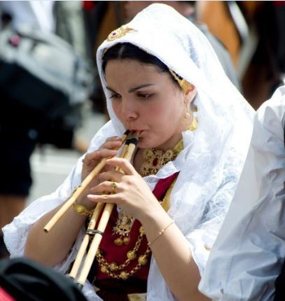 Voor deze muziek wordt een typisch Sardijns instrument gebruikt, de Launeddas, bestaande uit drie fluiten. De geschiedenis van de Launeddas gaat terug tot de achtste eeuw voor Christus en is op Sardinië nog steeds springlevend. Het instrument komt tevoorschijn tijdens religieuze vieringen, maar ook bij traditionele Sardijnse dansen (de balli Sardi). Je komt het met name tegen rond Sarrabus, in Cabras (Oristano) en in Ovodda (Nuoro). Klik hier om te horen hoe de muziek van Launeddas klinkt.