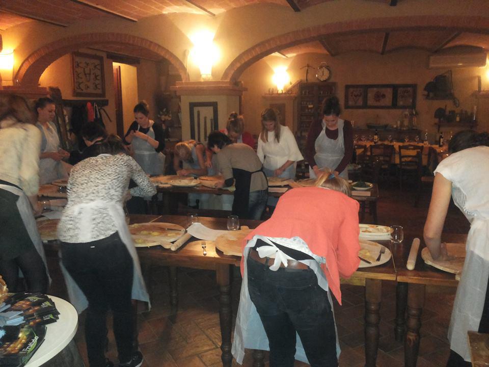 “Met een groep van 17 vrouwen hadden wij een reis geboekt naar Pisa, de stad waar we natuurlijk overal heerlijke pizza’s en pasta’s konden eten vergezeld van goede wijnen, in een gezellige ambiance. We wilden echter ook heel graag zelf aan de slag in de keuken en via Tritt hebben wij bij Serena en haar familie een hele leuke kookworkshop gevolgd. Na de middag in Lari te hebben doorgebracht waar we een bezoekje hebben gebracht aan de pastafabriek van Martelli en het kasteel van Lari, zijn we naar de agriturismo gegaan die net even buiten het dorpje Lari ligt. Normaal worden de workshops in de middag gegeven maar voor ons was er speciaal in de avond een plek vrijgemaakt.