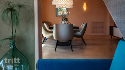 Zodra u de villa binnenstapt, wordt u getroffen door het open ontwerp en de overvloed aan natuurlijk licht, dankzij de grote ramen en hoge plafonds. De woon- eetkamer is ruim en uitnodigend, met een comfortabele zithoek en een eettafel die plaats biedt aan maximaal acht gasten. De volledig uitgeruste keuken heeft alles wat u nodig heeft om maaltijden te bereiden tijdens uw verblijf.