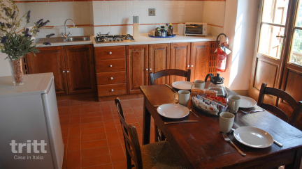 Het appartement strekt zich uit over drie niveaus en is geschikt voor 5 personen, met slaapkamers voorzien van airconditioning en aangrenzende badkamers. Een slaapkamer met 3 eenpersoonsbedden en via twee treden loopt u naar de slaapkamer met een tweepersoonsbed. De leefruimte heeft een gezellige zithoek en een keukenhoek met alle basisvoorzieningen, terwijl openslaande deuren toegang geven tot een eigen buitenruimte met tafel en stoelen. Het authentieke gewelfde plafond en de eenvoudige, typische Toscaanse inrichting zorgen voor een karaktervolle sfeer. Op loopafstand ligt het dorp Grassina met winkels, bakker, barretjes en restaurants, terwijl fietsen klaarstaan om de omgeving te verkennen.