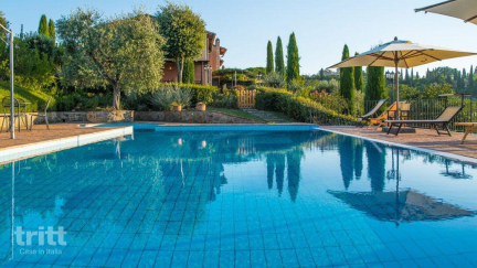 Deze omheinde vakantieboerderij bestaat uit meerdere wooneenheden die samen of deels te huur zijn, afhankelijk van het seizoen, en is daardoor bijzonder geschikt voor 2 gezinnen of een groter gezelschap tot 12 volwassenen en 4 kinderen. De appartementen zijn verdeeld over 2 woonlagen en ingericht in klassieke Toscaanse stijl met terracotta vloeren en houten balkenplafonds. Elk appartement beschikt over een eigen woonkamer met open haard, een complete keuken met oven, koelkast, vaatwasser en wasmachine en meerdere slaapkamers met bijbehorende badkamers. Daarnaast is er een vrijstaand huisje met eigen entree, een compacte maar complete keuken, een slaapkamer en een privé terras met uitzicht over het landschap. Buiten vind je ruime privé tuinen met pergola en barbecue, terwijl het gezamenlijke zwembad met bubbelbad, comfortabele ligbedden en buitendouche uitnodigt tot ontspannen dagen in de zon. Voor kinderen is er een speelruimte en een klein speeltuintje, en biologische groenten en fruit zijn direct op het landgoed verkrijgbaar.