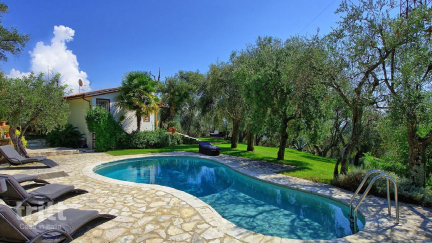 De villa is tegen de heuvel gebouwd en ligt op een ruim privéterrein met meerdere terrassen, veranda’s en zitplekken tussen olijfbomen en gazons. Binnen vormt het interieur een harmonieuze mix van modern design en klassieke elementen, met kunst, comfortabele meubels en grote raampartijen die het landschap naar binnen halen. De villa beschikt over 3 volwaardige slaapkamers met ensuite badkamers en een extra slaapruimte die vooral geschikt is voor kinderen of tieners. De leefruimtes zijn verdeeld over 2 niveaus, met een ruime living, open haard en een luxe woonkeuken die uitnodigt tot lange diners. Buiten ligt het privé zwembad beschut in de tuin, met ligstoelen en uitzicht over de heuvels richting zee. De buitenkeuken maakt samen koken en eten in de open lucht extra aantrekkelijk.