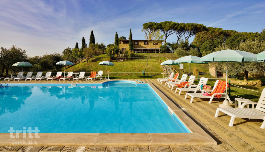 Het appartement ligt op de 1e verdieping en is geschikt voor 5 personen. Binnen vind je een sfeervolle woonkamer met een zitbank, open haard en eethoek. De keukenhoek is praktisch ingericht met onder meer een 4-pits kookplaat, vaatwasser, koelkast met vriesvak, magnetron, oven en een waterkoker. Er is een slaapkamer met een tweepersoonsbed en een slaapkamer met twee eenpersoonsbedden en een eenpersoonsslaapbank. De badkamer beschikt over een douche, toilet en wasmachine. Buiten beschikt het appartement over een overdekt privé terras, een fijne plek om te genieten van de rust en het panoramisch uitzicht. Het appartement is omgeven door een ruime tuin. Hier ligt een zwembad met panoramisch uitzicht, een volleybalveld en een tafeltennistafel voor gezamenlijk gebruik. Voor kinderen zijn er speeltoestellen in de schaduw van de bomen en ’s avonds kan er gebruik worden gemaakt van de gezamenlijke barbecue. De agriturismo wordt omringd door een ruime tuin met veel olijf- en pijnbomen. De eigenaren produceren onder andere olijfolie, wij raden het zeker aan om deze huisgemaakte olijfolie te proeven en te kopen!