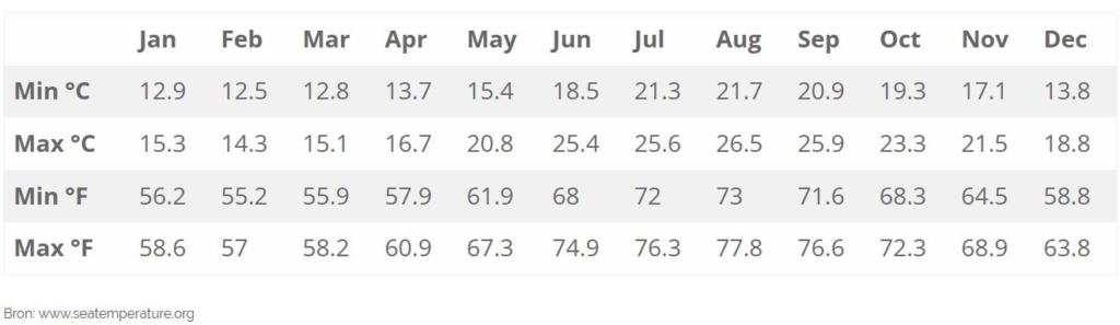 In onderstaande tabellen kun je gemakkelijk aflezen wat de temperatuur per maand is op Sardinië en de gemiddelde zeetemperatuur (op basis van Alghero, maar deze is redelijk gemiddeld). Natuurlijk is er per gebied verschil: in het bergachtige binnenland kan het weer verschillen met bijvoorbeeld de gezellige kustplaatsen. De hoger gelegen plekken op Sardinië, zoals Punta la Marmora, kunnen koeler zijn.
