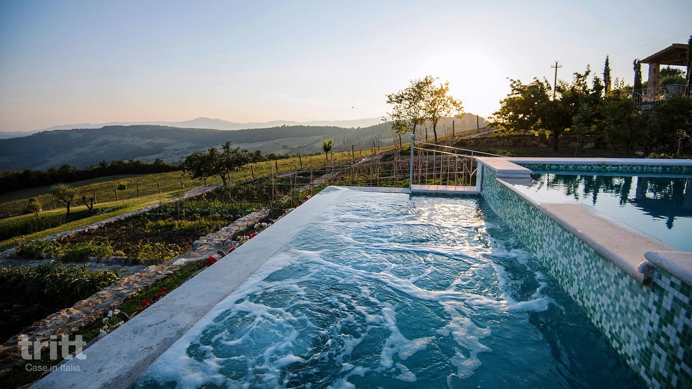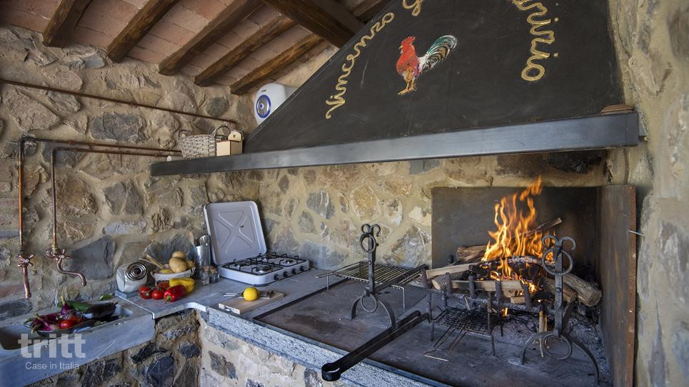 De villa is gebouwd in de stijl van een klassieke Toscaanse boerderij en straalt warmte en elegantie uit. Binnen vind je ruime leefruimtes, een compleet uitgeruste keuken en 5 comfortabele slaapkamers, verdeeld over de begane grond en een bovenverdieping die via een buitentrap bereikbaar is. Grote ramen zorgen overal voor licht en uitzicht op het omliggende landschap. Buiten ligt een zwembad met panoramisch uitzicht en een jacuzzi, omringd door terrassen met ligstoelen en parasols. De buitenkeuken met pizzaoven, barbecue en eigen moestuin maakt lange avonden buiten koken en samen eten extra aantrekkelijk.