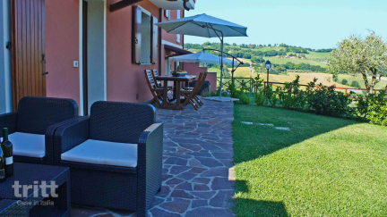 In de tuin vind je een zwembad met jacuzzi (10×5 m, onverwarmd), ligbedden en parasols met prachtig uitzicht over het landschap. De eigenaren produceren hun eigen pasta en olijfolie, die je ter plaatse kunt proeven en kopen. In de omgeving liggen diverse trattoria’s met lokale gerechten. Pesaro ligt op ca. 10 km en biedt stranden, winkels, restaurants en een levendig centrum. Ook Fano, Urbino, Gradara en San Marino zijn uitstekend te bezoeken. Een auto is hier onmisbaar om de vele mooie plekken in de regio te ontdekken.