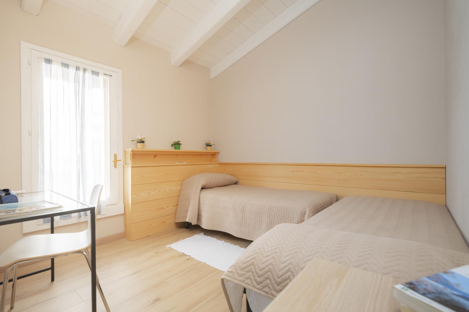 (2+3 pers.) Appartement gelegen boven de wijnmakerij (cantina). Woonkamer met 3 eenpersoonsbedden (w.v. 1 slaapbank met onderschuifbed) en eenvoudige kitchenette met een 2 pits-kookplaat, koelkast en koffiezetapparaat; slaapkamer met een tweepersoonsbed en sat tv; badkamer met douche en toilet; buiten een terras of balkon met tafel en stoelen. Prijs is incl. ontbijt.