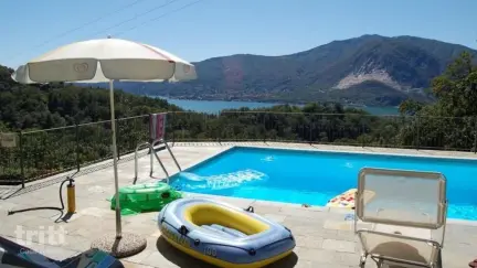 Het verblijf is verdeeld over meerdere niveaus en biedt een warme woonkamer met open haard en een verrassende extra: een ingebouwde pizza-oven om samen avonden lang te koken. De keuken geeft toegang tot het terras, waar je uitkijkt over het meer. Er zijn 3 slaapkamers, 2 badkamers en een extra zolderkamer die door de lagere hoogte vooral geschikt is voor kinderen. Buiten vind je een ruime tuin, een omheind privé zwembad en verschillende plekken om te ontspannen, zoals een hangmat, ligstoelen en een buitenruimte om te barbecueën.