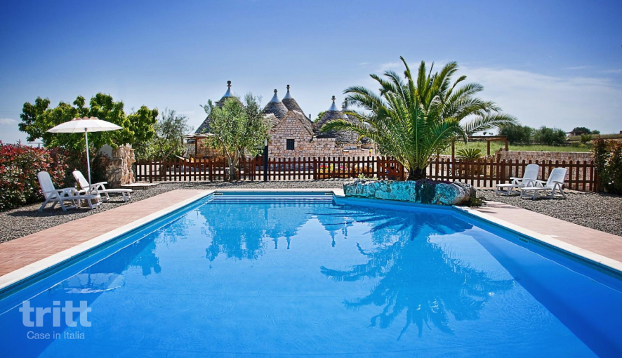 Agriturismo Trulli il Castagno is middenin de trullo vallei, Valle d’Itria, gelegen! De Valle d’Itria is het gebied in Puglia waar de bekende trulli staan; de witte gekalkte huisjes met hun grijze puntdaken en vaak witte versiering op de punt.