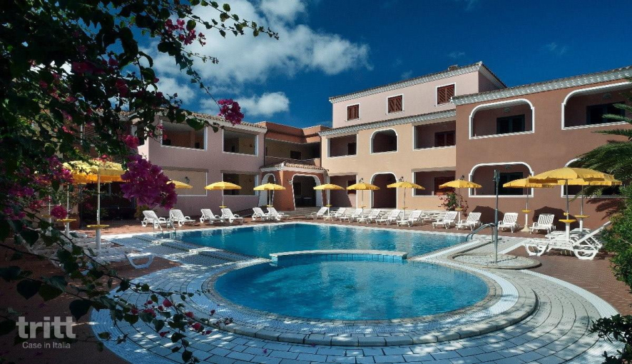 Het appartement is geschikt voor 3 personen en bevindt zich op de begane grond of eerste verdieping. Het bestaat uit één ruime woon- en slaapruimte met een tweepersoonsbed of 2 eenpersoonsbedden. De badkamer heeft een douche of bad. De kitchenette is voorzien van onder meer een oven, magnetron en koelkast, ideaal voor eenvoudige maaltijden. Extra derde (kinder)bed mogelijk tegen betaling. Buiten hoort een balkon of terrasje met zitje bij het appartement, een fijne plek om buiten te ontspannen. De residence beschikt over een zwembad met apart kinderbad, omringd door een zonneterras met ligbedden en parasols. Daarnaast is er een bar en een wasruimte voor algemeen gebruik. Winkels, een bakker en een restaurant liggen op loopafstand en het strand van Cala Liberotto bereik je in korte tijd.