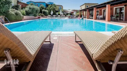 Het vakantiehuis bestaat uit 27 verzorgde appartementen die rondom het zwembad zijn gebouwd, aangevuld met een kleinschalige dependance met een eigen privézwembad. De appartementen zijn licht en comfortabel ingericht en beschikken over airconditioning, wifi, een nette keuken en een privéterras of balkon met tuinmeubilair. Er zijn varianten met 1 of 2 slaapkamers, waardoor het verblijf geschikt is voor stellen en kleine gezinnen. In de tuin is een speelgedeelte voor kinderen en bij het zwembad ligt een apart kinderbad. De bar vormt het hart van het complex, ideaal voor een ontbijt, een cappuccino of een aperitivo aan het eind van de middag.