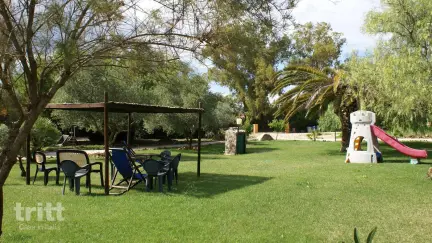 Als gast van het appartement kunt u gebruikmaken van de faciliteiten van de agriturismo: een ruime tuin, een zwembad met zonneterras, een speeltuintje en een voetbalveldje. De agriturismo is tevens een werkende boerderij met wijngaarden en groente- en fruitteelt. Afhankelijk van het seizoen kunt u kennismaken met het echte boerderijleven, van druiven plukken tot groenten oogsten en proeven van verse producten. De agriturismo heeft een eigen restaurant, waar je een paar keer per week kunt eten, we raden je dit zeker aan! Het wordt heerlijk gekookt met verse, seizoensgebonden ingrediënten, volgens Sardijnse tradities. Een goed glas wijn mag zeker niet ontbreken, gezien de wijngaard die naast de agriturismo ligt. Op korte afstand vindt u het dorp Fertilia voor boodschappen en restaurants, en het Maria Pia-strand, een prachtig zandstrand met helder water. De historische stad Alghero ligt op slechts 11 km afstand en biedt een levendige haven, een sfeervol centrum, uitstekende restaurants en diverse boottochten.