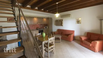 Het appartementen voor 6 personen (4+2) ligt als kleine Sardijnse huisje verdeeld over het terrein en beschikt over een veranda of terras met tuinmeubilair. Het vakantiehuis biedt veel ruimte en is ofwel gelijkvloers of verdeeld over 2 woonlagen. Beneden bevindt zich een lichte woonkamer met een tweepersoonsslaapbank en een keukenhoek die compleet is ingericht met oven, kookplaat, magnetron, koelkast, vrieskast, vaatwasser, waterkoker en broodrooster. Boven liggen een slaapkamer met een tweepersoonsbed en een tweede slaapkamer met 2 eenpersoonsbedden. De badkamer is uitgerust met douche, bidet, wasmachine en föhn. Over het hele complex heerst een ontspannen vakantiesfeer met 2 zwembaden, jacuzzi, zonnebedden en parasols. Het landgoed heeft een eigen restaurant waar seizoensgerechten uit de streek worden geserveerd, en voor kinderen is er een kleine boerderij met dieren. Wie graag meer privacy heeft kan kiezen voor een van de vrijstaande huizen op het domein.