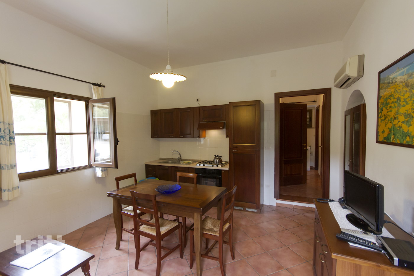Het 6-persoons appartement maakt deel uit van een klein complex met in totaal enkele accommodaties, verspreid over gerestaureerde boerderijgebouwen. De sfeer is landelijk en authentiek, met comfortabele voorzieningen die het verblijf aangenaam maken. Binnen vind je een ruime woonkamer met open keuken, 2 slaapkamers en een badkamer, terwijl buiten een terras met tuinmeubilair uitnodigt om lange avonden buiten door te brengen. Centraal op het terrein ligt een zwembad met whirlpool en zonneterras, aangevuld met een speelplek voor kinderen en een gezamenlijke barbecue. Het geheel ademt rust, ruimte en het leven op het Sardijnse platteland.