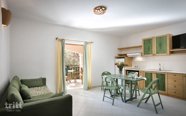 De appartementen liggen als kleine huisjes rondom het gedeelde zwembad en zijn ingericht in lichte, mediterrane kleuren. Elk appartement beschikt over een eigen terras of balkon met uitzicht op het zwembad. Het tweekamerappartement (2+2 personen) bevindt zich op de begane grond of eerste verdieping. De woonkamer heeft 2 eenpersoonsslaapbanken, een kitchenette met 4-pits kookplaat, koelkast met vriesvak en een mokapot voor Italiaanse koffie. De slaapkamer beschikt over een tweepersoonsbed en er zijn 2 badkamers met douche. Buiten vind je een terras met tafel en stoelen. Dit appartement is geschikt voor 2 volwassenen en 2 kinderen tot 14 jaar. Een babybedje kan zonder kosten worden bijgeplaatst. Het strand ligt aan de overkant van de weg, op slechts ongeveer 250 meter, waardoor je binnen een paar minuten met je voeten in het zand staat. In het kustdorpje op circa 100 meter wandel je zo naar winkels, ijssalons en restaurants.