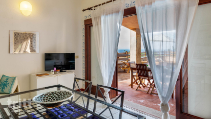 Het vakantiehuis is geschikt voor 6 personen, er kan een extra bed voor een 7e persoon worden bijgeplaatst. Woonkamer met bank, eethoek, open keuken met barretje, keuken voorzien van koelkast met vriesvak, 4-pitskookplaat, oven, magnetron, vaatwasser; 2 slaapkamers met tweepersoonsbed; slaapkamer met 2 eenpersoonsbedden; 2 badkamers met douche, wastafel, toilet en bidet. Veranda aan de villa met grote houten tuintafel en stoelen. Ruime buitenruimte met zeezicht, met bbq, zwembad, buitendouche, ligstoelen.