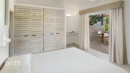 De villa beschikt over een woonkamer met een slaapbank (geschikt voor kinderen tot 14 jaar), een eethoek en een keuken voorzien van een 4-pits kookplaat, vaatwasser en een koelkast met vriesvak. Er is een slaapkamer met een tweepersoonsbed met ensuite badkamer met een douche, wastafel, toilet en bidet. Een slaapkamer met twee eenpersoonsbedden en een eenpersoonsslaapbank met ensuite badkamer met douche, wastafel, toilet en bidet. Buiten heb je zowel aan de voorkant als de achterkant een ruim terras met ligstoelen, loungemeubilair en een barbecue. Je beschikt over een privé buitenzwembad. Daarnaast heeft de villa een dakterras met ingebouwde loungebank en 2 ligstoelen. Je hebt prachtig uitzicht op zee vanaf de terrassen. Dankzij de ligging binnen een levendige omgeving zijn diverse voorzieningen en faciliteiten eenvoudig bereikbaar. De villa is onderdeel van een hotelresort. In het restaurant van het hotel kunt u terecht voor ontbijt, lunch of diner (ook glutenvrije gerechten) en ook kunt u gebruik maken van het grote gedeelde buitenzwembad. De receptie van het hotel is 24 uur per dag bereikbaar en accepteert betalingen met creditcard. U kunt hier met alle vragen terecht, ook kunnen er excursies worden geboekt. Kinderoppas voor kinderen in de leeftijdscategorie van 4 tot 12 jaar is mogelijk in de periode van 12 juni tot 2 september tussen 9:30 – 12:30 uur en 15:30 – 18:30 uur. Er is een pianobar waar tot in de late uurtjes nog een lekker drankje genuttigd kan worden en er worden geregeld shows georganiseerd bij het zwembad. Er is voldoende parkeergelegenheid bij het hotel (zonder toezicht). Ook beschikt het hotel over een mooi Spa Center met gebruik van verschillende Thalasso zwembaden met verwarmd zeewater en hydromassage, sauna, Turks bad, fitnessruimte en relaxruimte.