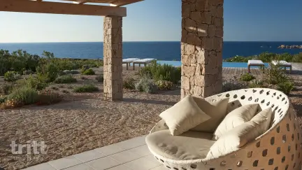 De villa is beschikt over een woonkamer met zithoek, een eethoek en een keuken voorzien van een vaatwasser en een koelkast. Er zijn twee slaapkamers met elk een tweepersoonsbed en een badkamer met een douche, wastafel, toilet en bidet. De 3e slaapkamer met een tweepersoonsbed en ensuite badkamer op de 1e verdieping heeft een eigen ingang. Buiten heb je zowel aan de voorkant als de achterkant een ruim terras met een barbecue. Je beschikt over een privé buitenzwembad. Je hebt prachtig uitzicht op zee vanaf de terrassen. Dankzij de ligging binnen een levendige omgeving zijn diverse voorzieningen en faciliteiten eenvoudig bereikbaar. De villa is onderdeel van een hotelresort. In het restaurant van het hotel kunt u terecht voor ontbijt, lunch of diner (ook glutenvrije gerechten) en ook kunt u gebruik maken van het grote gedeelde buitenzwembad. De receptie van het hotel is 24 uur per dag bereikbaar en accepteert betalingen met creditcard. U kunt hier met alle vragen terecht, ook kunnen er excursies worden geboekt. Kinderoppas voor kinderen in de leeftijdscategorie van 4 tot 12 jaar is mogelijk in de periode van 12 juni tot 2 september tussen 9:30 – 12:30 uur en 15:30 – 18:30 uur. Er is een pianobar waar tot in de late uurtjes nog een lekker drankje genuttigd kan worden en er worden geregeld shows georganiseerd bij het zwembad. Er is voldoende parkeergelegenheid bij het hotel (zonder toezicht). Ook beschikt het hotel over een mooi Spa Center met gebruik van verschillende Thalasso zwembaden met verwarmd zeewater en hydromassage, sauna, Turks bad, fitnessruimte en relaxruimte.
