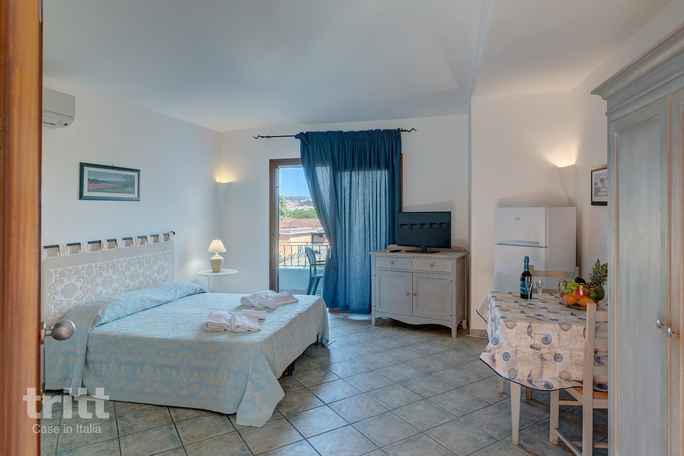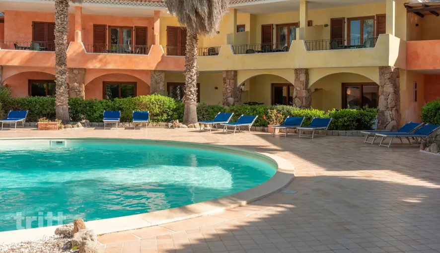 Dit appartement is geschikt voor 2 personen en bevindt zich op de begane grond of eerste verdieping van een kleinschalige residence in Sardijnse stijl. Binnen is het verblijf praktisch en comfortabel ingericht met een woonruimte met tweepersoonsslaapbank, tv en eethoek, een kitchenette met magnetron en een badkamer met douche, toilet en föhn. Buiten beschik je over een eigen terras of balkon met zitje. Airconditioning en wifi zijn aanwezig en op aanvraag zijn een strijkijzer en strijkplank beschikbaar. Een kinderbedje en/of kinderstoel zijn beschikbaar tegen betaling. De appartementen liggen verspreid in een grote mediterrane tuin die leidt naar het centraal gelegen zwembad, een fijne plek om te ontspannen na een dag aan zee. Voor gezamenlijk gebruik zijn er barbecues en voor kinderen is er een kleine speeltuin. Fietsen kunnen worden gehuurd om de omgeving te verkennen.