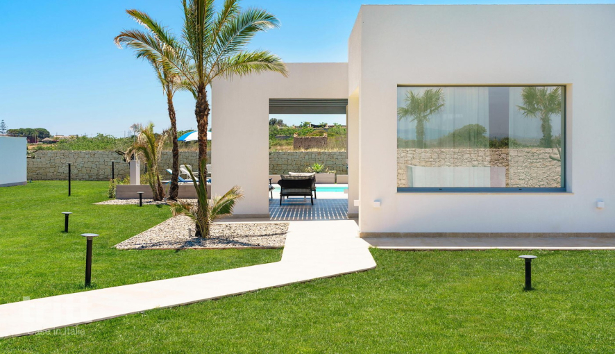 Aan de zuidoostkust van Sicilië, op slechts 400 meter van het strand van San Lorenzo, ligt deze moderne villa in Italië. De ligging combineert rust, zee en groen met de nabijheid van levendige kustplaatsen. Een stijlvolle plek voor wie comfort en het mediterrane buitenleven wil samenbrengen.