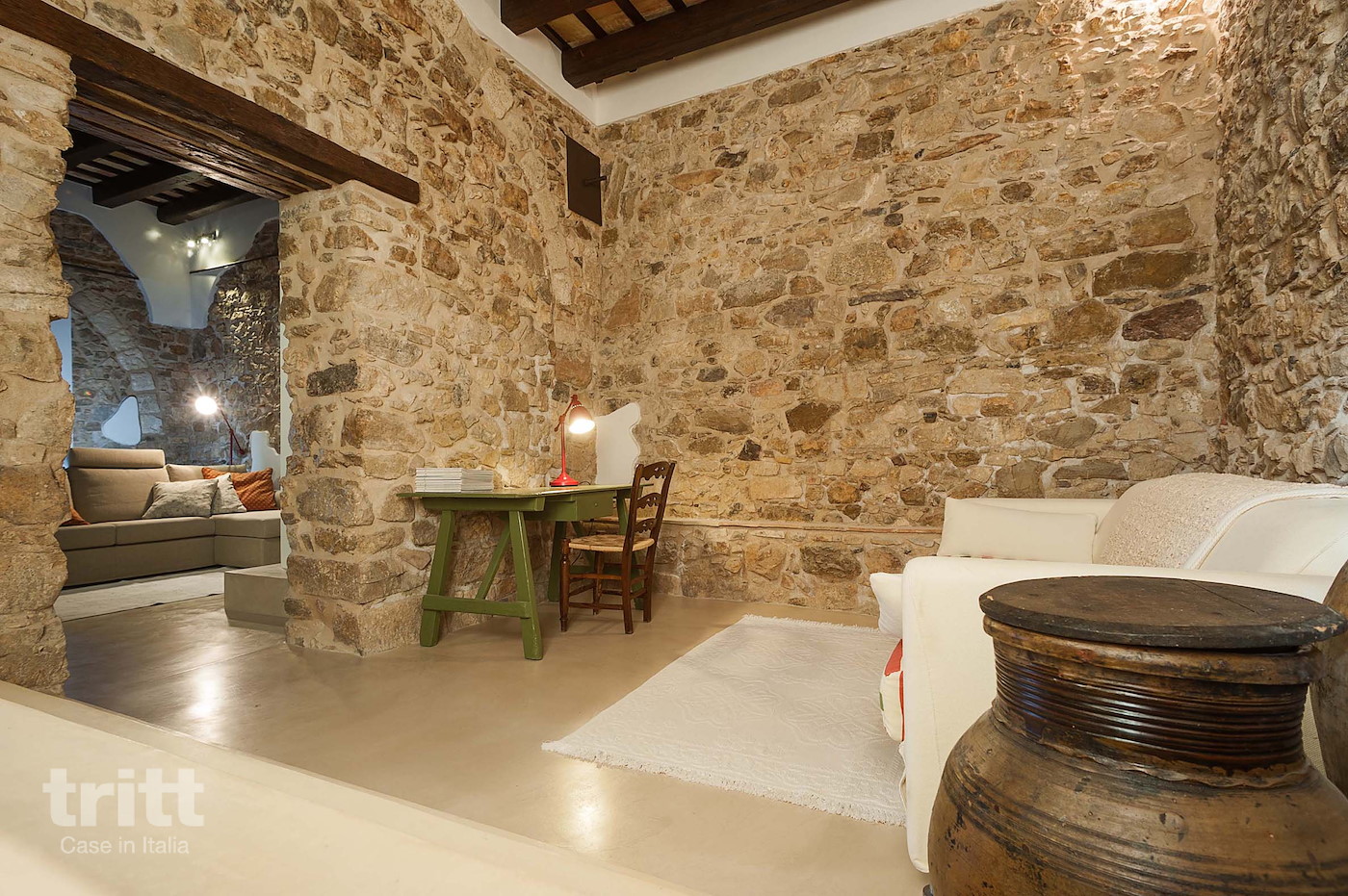 Deze karakteristieke baglio is zorgvuldig gerestaureerd en bestaat uit een comfortabel appartement voor maximaal 6 personen. De indeling is ruim en praktisch, met een gezellige woonkamer, open keuken en meerdere slaapkamers verdeeld over 2 verdiepingen. Authentieke details zijn gecombineerd met modern comfort, zoals airconditioning en goede keukenvoorzieningen. Buiten komt alles samen op de centrale binnenplaats, waar je ’s ochtends rustig kunt ontbijten. Het gedeelde zwembad ligt in een mediterrane tuin met palmbomen, ligbedden en zonneterras en vormt het ontspannen middelpunt van het verblijf. Daarnaast is er een gezamenlijke ruimte waar je samen kunt ontspannen of een spel kunt spelen.