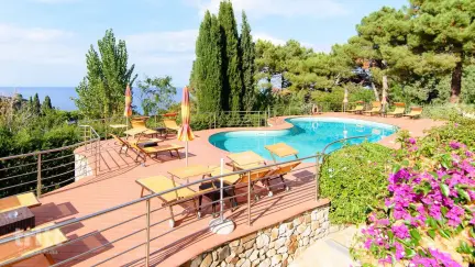 Prachtig gelegen appartement tegen een heuvel aan, midden in de natuur, met uitzicht op de schitterende golf van Capo Sant’Andrea. Het appartement ligt op een vakantiecomplex omringd door een goed onderhouden tuin met citroenbomen en wijnstokken. Voor het complex ligt een zwembad met groot zonneterras, ligbedden en parasols, waar u in alle rust kunt genieten van het uitzicht op de zee. ’s Avonds is de verlichting langs het pad naar het strand romantisch verlicht en dankzij het gebruik van LED-technologie blijft de sterrenhemel prachtig zichtbaar.