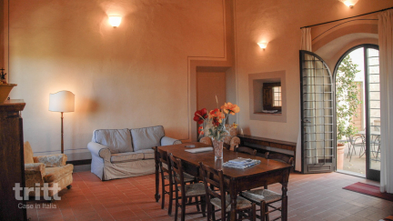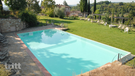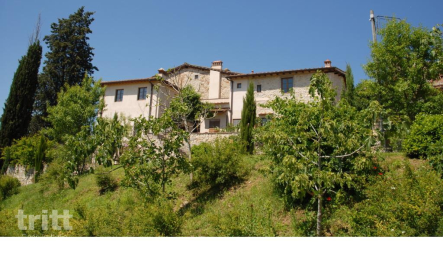 Het verblijf ligt op een landgoed van 35 hectare vol cipressen, olijfbomen en sfeervolle paden. Bij het zwembad vind je een zonnig terras en een ruime tuin met speelplekken voor kinderen, en er staan fietsen klaar om de omgeving te verkennen. De 15 appartementen liggen verspreid over het hoofdgebouw en enkele bijgebouwtjes. Ze zijn eenvoudig en typisch Toscaans ingericht, met kenmerken zoals houten balken, terracotta vloeren en een privéterras met zitje. De meeste appartementen hebben verwarming, satelliet-tv, een combimagnetron of mini-oven en WiFi; een aantal beschikt daarnaast over airconditioning. Het 4 personen (2+2) appartement op de begane grond heeft een royale woonkamer met gewelfd plafond en directe toegang tot het terras, een keuken met alle basisvoorzieningen, een slaapkamer met tweepersoonsbed en een badkamer. Twee extra bedden kunnen in de woonkamer of slaapkamer worden geplaatst. Het kan desgewenst worden ingezet als ruimte voor bijeenkomsten tot ca. 50 personen. Beneden aan de heuvel, op ca. 1 km lopen, ligt Grassina met winkels, restaurants en dagelijkse voorzieningen.