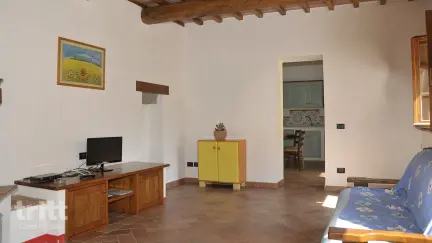 Dit ruime vakantieappartement bestaat uit 2 verdiepingen en heeft een warme, landelijke sfeer. Op de begane grond vind je een comfortabele woonkamer met open haard, een ruime keuken met directe toegang tot de privépatio en een badkamer. Boven liggen drie slaapkamers, elk met een eigen karakter, waaronder een kamer met badkamer ensuite en een badkamer met hoekbad. Buiten geniet je op je eigen patio van het uitzicht op het Toscaanse landschap, terwijl het zwembad op korte loopafstand ligt.