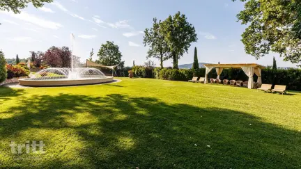 Het appartement is geschikt voor 4 tot 6 personen en is gelegen op de begane grond. De woonkamer beschikt over een zithoek, eethoek en een tweepersoonsslaapbank die geschikt is voor 2 kinderen (tot 12 jaar) of 1 volwassene. De keukenhoek is voorzien van een vaatwasser, oven, keramische kookplaat en een koelkast met vriesgedeelte. Er zijn 2 slaapkamers met tweepersoonsbedden en een badkamer met douche, wastafel, toilet, bidet en haardroger. Buiten heb je een terrasje met zitje. Het landgoed bestaat uit meerdere gebouwen in Toscaanse stijl en ligt in een park van circa 80 hectare met een ruime tuin, een zwembad met zonneterras, een klein meer waarin gevisd kan worden en een speeltuin voor kinderen. Gasten kunnen gebruikmaken van een wasmachine en droger voor gezamenlijk gebruik. Op het terrein zijn mogelijkheden voor wandelen, fietsen en mountainbiken, en er zijn faciliteiten zoals fietsverhuur. U kunt via de accommodatie ook paardrijlessen boeken. Houd er rekening mee dat het domein ook wordt gebruikt voor bruiloften; tijdens dergelijke evenementen zijn de centrale tuin en fontein gereserveerd voor gasten van het evenement. Als u wilt kunt u bij de accommodatie tegen betaling gebruik maken van het ontbijt, een aperitief of een lunch met pasta's en salades, dagelijks geserveerd in de 'Bistro' (van april tot oktober). Op aanvraag is eventueel ook diner mogelijk met keuze uit pasta's en pizza. In het hoofdgebouw bevinden zich de receptie, een diner- en partyzaal.