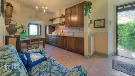 Dit vakantieappartement is geschikt voor 2 personen en ligt op de begane grond van een gerestaureerde boerderij uit de 17e eeuw. De dikke natuurstenen muren zorgen voor koelte in de zomer en geven het interieur een authentieke Toscaanse sfeer. Binnen vind je een knus woongedeelte met zithoek en keuken, voorzien van een 4-pits kookplaat, oven, koelkast met vriesvak, vaatwasser en koffiezetapparaat (filter). De slaapkamer heeft een comfortabel tweepersoonsbed en de badkamer is uitgerust met een douche en föhn. Buiten beschikt het appartement over een eigen terras met tuinmeubilair en uitzicht over de groene heuvels. Het terrein is aangelegd als een klein Italiaans borgo, met meerdere appartementen op verschillende niveaus die samen een charmant geheel vormen. Het zoutwaterzwembad ligt panoramisch tussen de olijfbomen en wordt omringd door ligstoelen en parasols. Voor kinderen is er een speeltuintje en een tafeltennistafel, en honden zijn op aanvraag welkom (niet bij het zwembad). De rust en privacy van het landgoed combineren hier perfect met de levendigheid van het nabijgelegen dorp.