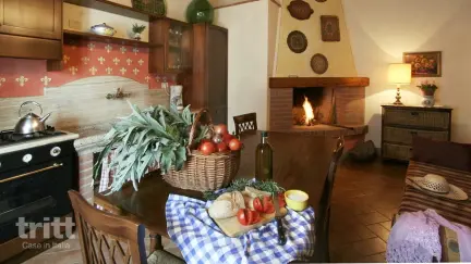 Dit ruime vakantieappartement voor 6 personen is gesitueerd op de eerste verdieping en biedt volop comfort en sfeer. Binnen vind je een ruime woonkamer met een volledig uitgeruste keuken voorzien van een 4-pits kookplaat, oven, koelkast met vriesvak, vaatwasser en filterkoffiezetapparaat. Er zijn drie slaapkamers: twee met een tweepersoonsbed en één met twee eenpersoonsbedden, elk in dezelfde warme Toscaanse stijl. De drie badkamers, elk met een douche, zorgen voor extra comfort ideaal voor gezinnen of stellen die samen reizen.