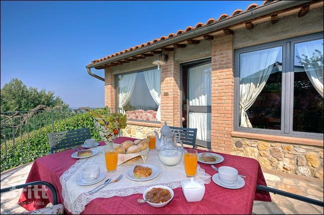 Buiten ligt een privéterras met tafel en stoelen, ideaal voor een ontbijt in de ochtendzon of een glas wijn bij zonsondergang. De woning maakt deel uit van een charmant landgoed dat is aangelegd als een klein Toscaans dorpje (Borgo), met appartementen op verschillende niveaus en veel privacy. In de verzorgde tuin ligt een panoramisch zoutwaterzwembad, omringd door ligstoelen en mediterrane beplanting. Voor kinderen is er een speeltuintje, een tafeltennistafel en volop ruimte om te spelen. Honden zijn welkom op aanvraag (niet bij het zwembad).