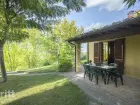 Het gastenverblijf ligt binnen een omheind gedeelte van vijftien hectare, met wandelpaden door bossen, olijfgaarden en langs kleine meertjes. Het appartement beschikt over een woonkamer met open haard, zitbank en keukenhoek, twee badkamers met douche, wastafel, toilet en bidet, een slaapkamer met tweepersoonsbed en een slaapkamer met twee eenpersoonsbedden. In de tuin, bij het zwembad op ongeveer 20 meter afstand, is een gereserveerd zitje met tuinmeubilair waar u heerlijk buiten kunt eten. Het appartement bereikt u via een stenen loopbruggetje, waardoor de entree gelijk ligt met het tuinniveau.