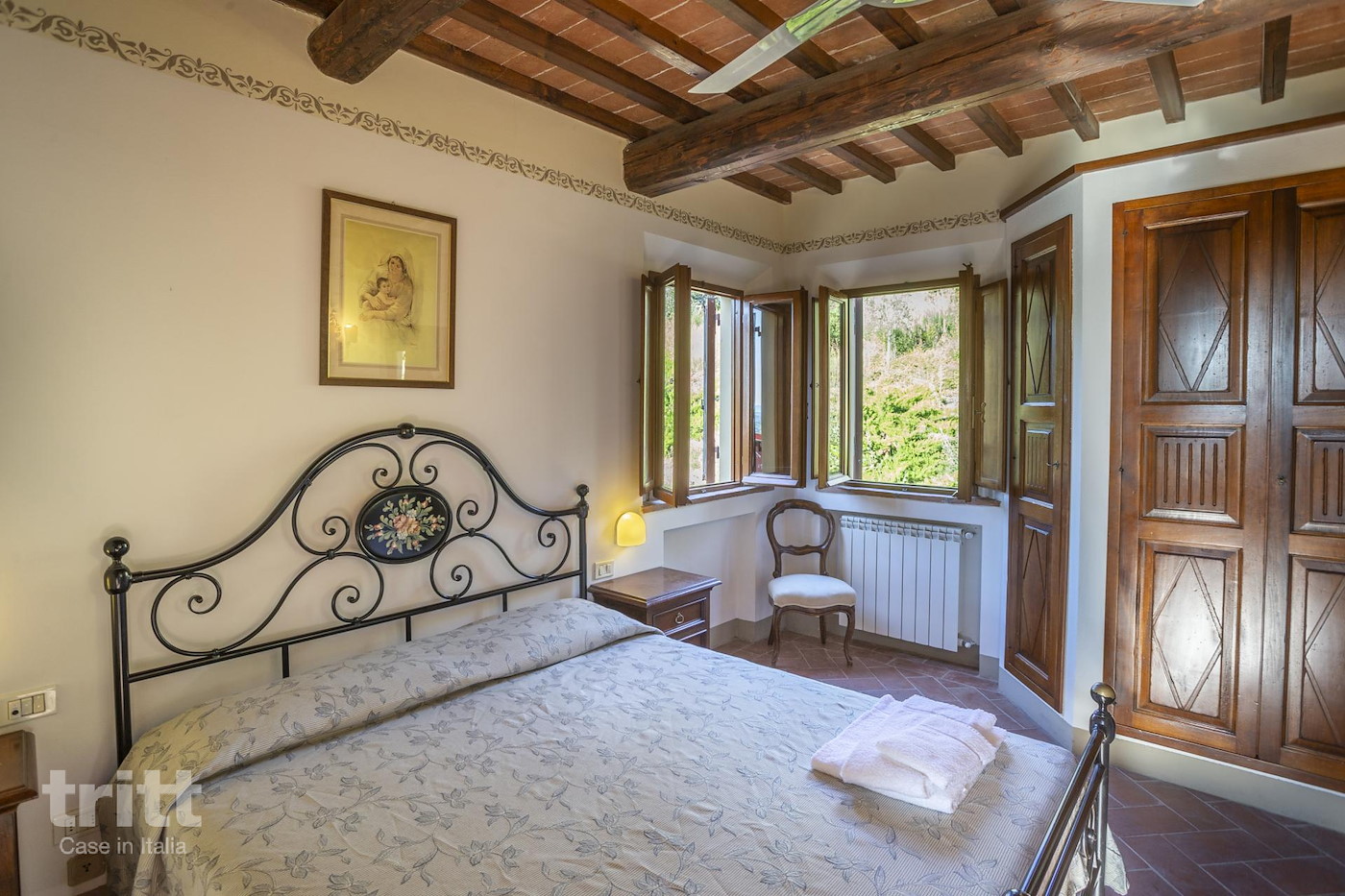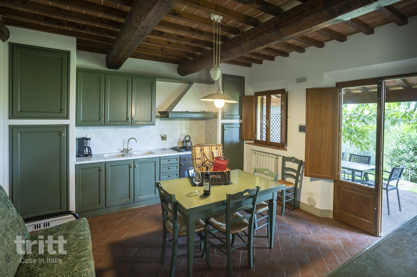 Het domein beslaat ruim 48 hectare waarop op volledig biologische wijze olijven, druiven, granen en andere gewassen worden verbouwd. De druiven worden hier verwerkt tot hoogwaardige wijnen en Grappa, terwijl de olijven zorgen voor een uitzonderlijke olijfolie van eigen bodem. Op het terrein ligt een historische boerderij die is gerestaureerd tot meerdere sfeervolle appartementen. Dit ruime driekamerappartement ligt op de begane grond en is ondergebracht in een voormalig bijgebouw van de boerderij. Binnen vindt u een gezellige woonkamer met keukenhoek en eethoek. De eerste slaapkamer beschikt over een tweepersoonsbed en een aangrenzende badkamer met ligbad. De tweede slaapkamer heeft twee eenpersoonsbedden en er is een extra badkamer met douche. Dankzij de tweepersoonsslaapbank in de woonkamer kunnen hier tot zes personen comfortabel verblijven. Buiten beschikt het appartement over een overdekt terras met pergola en een prachtig uitzicht over het zwembad en de groene landerijen. Het is een heerlijke plek om te ontbijten in de ochtendzon of ’s avonds te genieten van een Toscaanse wijn afkomstig van het landgoed zelf. Centraal op het domein ligt een zoutwater zwembad met ruim zonneterras en comfortabele ligstoelen. Vanaf hier kijkt u uit over de omliggende heuvels die zo typerend zijn voor dit deel van Toscane. Het is een heerlijke plek om tot rust te komen na een dag vol uitstapjes, of om simpelweg te genieten van het uitzicht en de stilte van het Toscaanse platteland. Verspreid over het landgoed vindt u bossen, wijngaarden, kleine meertjes en verschillende wandelpaden die met elkaar verbonden zijn. Wie meer wil leren over het landgoed kan deelnemen aan speciale activiteiten in het hoogseizoen, zoals rondleidingen door de wijngaarden, proeverijen of yogalessen tussen de olijfbomen, altijd bij voldoende deelname.