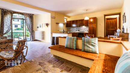 Het verblijf bestaat uit meerdere appartementen in een voormalige boerderij, waar landelijke charme is gecombineerd met comfort. Het appartement beschikt over een gezellige woonruimte met open haard en slaapbank, een keukenhoek, een aparte slaapkamer en een badkamer. Buiten heb je een eigen zitplek in de tuin met uitzicht over het heuvelachtige landschap. Op het terrein ligt een zwembad waar ook ’s avonds gezwommen mag worden, evenals faciliteiten zoals jeu de boules, tafeltennis en een kleine speeltuin. Op korte loopafstand bevindt zich een herberg met restaurant waar Toscaanse gerechten worden geserveerd en waar regelmatig gezamenlijke diners en proeverijen worden georganiseerd met wijn, olijfolie en andere streekproducten van het landgoed.