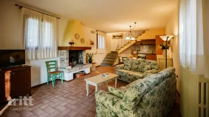 Deze karaktervolle vakantieboerderij ligt op een uitgestrekt landgoed en bestaat uit meerdere appartementen. Het appartement voor 4 personen is verdeeld over 2 verdiepingen en biedt een warme, huiselijke sfeer. Op de begane grond bevindt zich de woonkamer met zitbank, open haard, tv, eethoek en een praktische keukenhoek. Via een trap bereik je de verdieping met 2 slaapkamers, waarvan één met een tweepersoonsbed en één met 2 eenpersoonsbedden, en een complete badkamer. Buiten is in de tuin een privéplek met tafel en stoelen gereserveerd. Op het terrein kunnen gasten gebruikmaken van een zwembad van 6 x 12 m en worden wijn en extra vergine olijfolie geproduceerd.