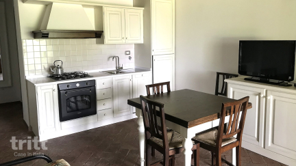 De 10 appartementen op het terrein zijn ondergebracht in de vroegere werkruimtes van het landhuis, waardoor ze een karakteristieke uitstraling hebben. Dit appartement voor 4 personen (2+2) beschikt over een lichte woonruimte met tweepersoonsslaapbank en een praktisch keukenblok, samen met een slaapkamer met comfortabel tweepersoonsbed en een badkamer met douche. Zowel vanuit de woonkamer als de slaapkamer geven openslaande deuren toegang tot een overdekte patio met tuinmeubilair, een rustige plek om te genieten van het uitzicht over de groene heuvels. Op het domein liggen wandelpaden, bossen, een meertje, sportmogelijkheden, een joggingpad en zwembaden voor jong en oud, terwijl ontbijt of broodjesservice op verzoek beschikbaar is.