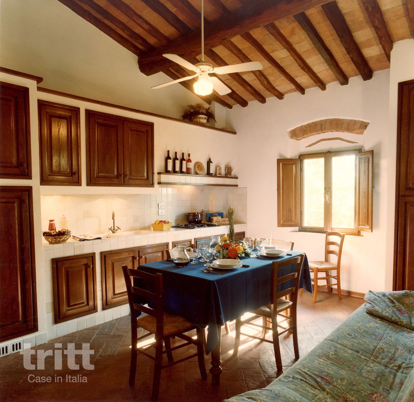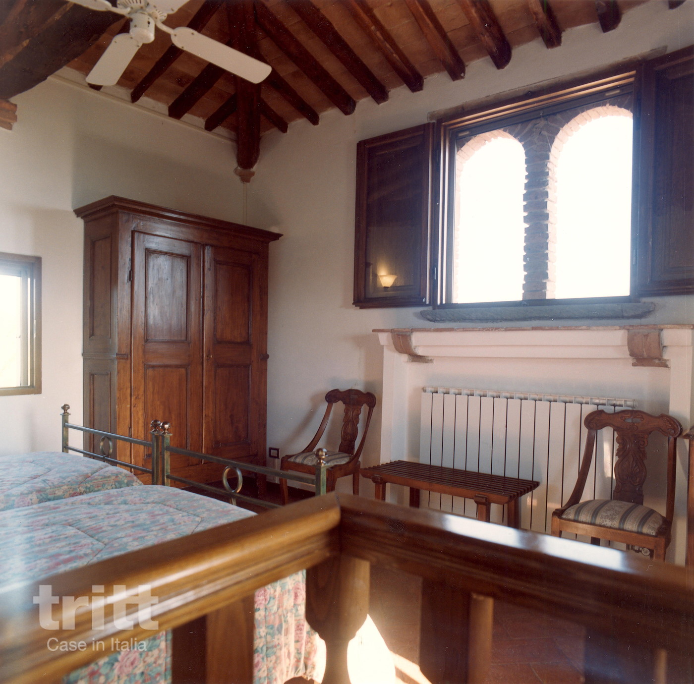 De 10 appartementen op het terrein zijn ondergebracht in de voormalige werkruimtes van het landhuis en behouden daardoor hun authentieke karakter. Dit bijzondere appartement voor 4 personen en bestaat uit 2 woonlagen op de eerste en tweede verdieping. Beneden vind je een lichte woonkamer met tweepersoonsslaapbank, een keukenhoek, een slaapkamer met tweepersoonsbed en en-suite badkamer, plus een tweede badkamer met douche. Een smalle wenteltrap leidt naar de bovenste verdieping: een sfeervolle slaapkamer met 2 eenpersoonsbedden, gelegen in de nok van het hoofdgebouw. Van hieruit heb je rondom uitzicht, tot aan San Gimignano (34 km), en ’s avonds een indrukwekkende sterrenhemel. In de tuin ligt een privéterras met pergola en tuinmeubilair, ideaal om te ontspannen met zicht op het Toscaanse landschap.